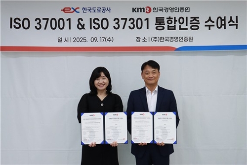 도로공사 관계자는 "이번 ISO 37001·37301 인증은 공사의 윤리·준법 경영 체계가 국제적 신뢰성을 확보했다는 상징적 성과"라며 "앞으로도 ESG(환경·사회적 책무·기업지배구조 개선) 경영을 실현하는 공기업으로서 투명성과 책임성을 강화하고 국민의 신뢰에 부응하겠다"라고 말했다.