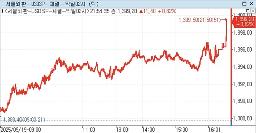 (서울=연합인포맥스) 윤정원 기자 = 달러-원 환율이 뉴욕장에서 1,400원을 목전에 뒀다.
