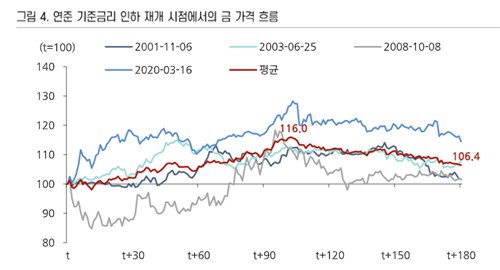 최 연구원에 따르면 지난 2000년 이후 연방준비제도(연준·Fed)가 온라인카지노 커뮤니티 인하의 사이클에서 3개월 이상 동결한 후 재차 인하한 사례는 4차례 존재한다. 그리고 온라인카지노 커뮤니티 인하 직후 100영업일 동안 금 가격은 평균 16% 상승한 것으로 나타났다.