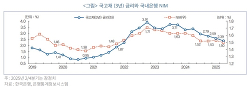 이 연구위원은 "국내은행의 이자이익 비중은 2022년 말 94.1%까지 상승한 후 2025년 상반기 현재 85.1%로 하락했지만, 여전히 매우 높은 수준"이라며 "미국 연방준비제도(Fed·연준)의 금리인하 기조, 우리나라의 어려운 경기 상황 등을 고려할 때 국내은행 NIM도 2022년 4분기 이후의 내림세를 지속할 것"이라고 했다.