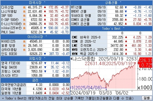 △뉴욕 증시에서 3대 지수 모두 장중 사상 최고치 기록. 미국의 기준금리 추가 인하 기대로 종가 기준으로도 모두 최고치 기록. 중·소형주 위주의 러셀2000 지수는 장 중 사상 최고치를 경신한 뒤 매물이 쏟아져 0.77% 하락.