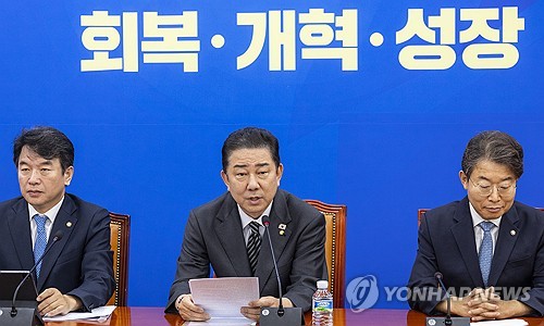 (서울=연합인포맥스) 황남경 기자 = 더불어민주당 김병기 원내대표는 배임죄 폐지에 반대 입장을 보인 국민의힘을 향해 "친기업 정당을 자처하며 재계의 숙원에는 등을 돌리고 있다"고 비판했다.