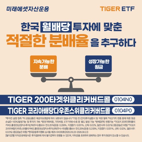 미래에셋자산운용 윤병호 전략ETF운용본부장은 "'TIGER 7% 위클리커버드콜 ETF 시리즈'는 고분배의 유혹을 배제하고, 국내 주식시장에 기반해 지속 가능한 현금흐름과 원금 성장을 최우선순위로 두고 설계했다"며 "이는 코스피200의 성장성과 배당성장주의 안정성을 바탕으로 은퇴 이후 생활자금을 안정적으로 확보할 수 있는 대안이 될 것"이라고 말했다.