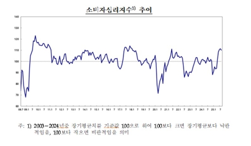 한은은 "건설경기 부진 및 미국 관세 부과 영향 확대에 따른 수출 둔화 우려 등으로 소폭 하락했다"고 설명했다.