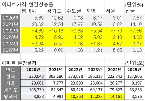 (서울=연합인포맥스) 윤영숙 기자 = 전국 주택 공급이 정점을 통과한 2020~2021년 이후 집값이 하락세로 돌아서면서 많은 지역이 미분양에 시달렸다.