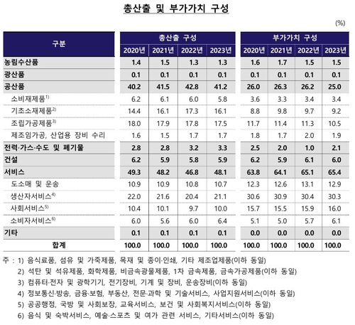 부가가치 기준으로는 서비스 비중이 65.1%에서 65.4%로 올랐다.