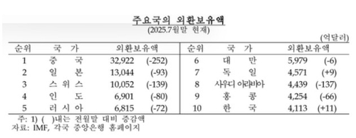 대만과 우리나라는 각각 5천979억온라인카지노 벳무브, 4천113억온라인카지노 벳무브의 외환보유액을 보유하고 있다.