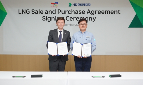 (세종=연합인포맥스) 이재헌 기자 = HD현대케미칼이 프랑스 종합 에너지 기업인 '토탈에너지스(TotalEnergies)'와 LNG(액화천연가스) 장기 직도입 계약을 체결했다고 24일 밝혔다.