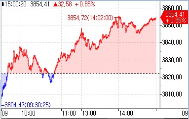 연합인포맥스 세계주가지수(화면번호 6511)에 따르면 이날 상하이종합지수는 32.58포인트(0.83%) 상승한 3,853.64에 거래를 마감했다.