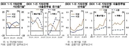 아울러 한은은 미국 관세부과의 영향으로 통상환경이 어려워졌다면서 "석유화학, 철강, 자동차 등 특정 업종이 밀집된 지역의 경우 관련 제조업 대출의 건전성 관리 부담이 증대될 수 있다"고 경고했다.