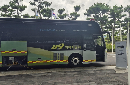 (제주=연합인포맥스) 윤은별 기자 = 버스도, 청소 차량도, 소방서 차량도 수소로 달리는 곳. '수소 섬'을 꿈꾸는 제주도 이야기다.