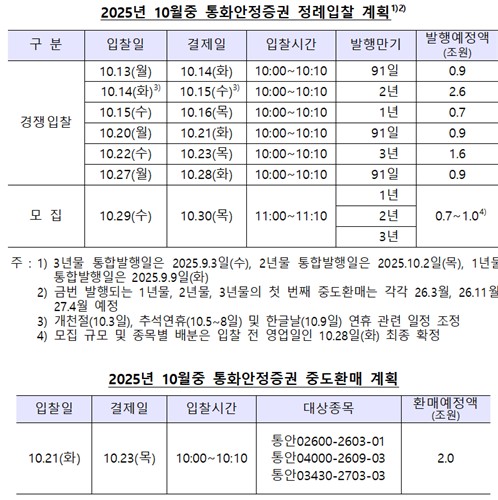 (서울=연합인포맥스) 손지현 기자 = 한국은행은 오는 10월 8조6천억원 규모의 통화안정증권을 발행할 계획이라고 25일 발표했다.
