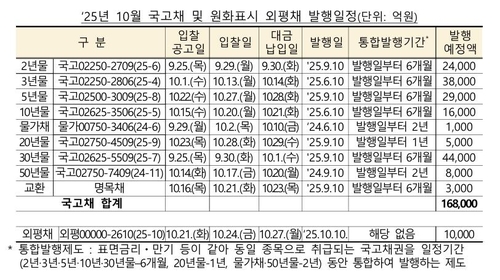 (서울=연합인포맥스) 노현우 기자 = 기획재정부가 내달 16조5천억원 규모의 국고채를 경쟁입찰 방식으로 발행한다고 25일 밝혔다.