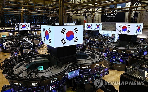 이날 뉴욕 증권거래소는 방문을 환영하는 의미로 성조기와 함께 태극기를 게양해 이 대통령을 맞이했다.