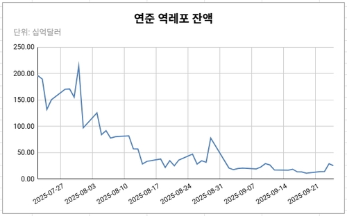 25일(현지시간) 뉴욕 연방준비은행에 따르면, 이날 실시된 역레포 입찰에는 21개 기관이 참여해 총 253억6천900만달러를 역레포에 예치했다. 전날 대비 약 38억달러 감소했으나 2거래일 연속 200억달러를 웃돌았다.