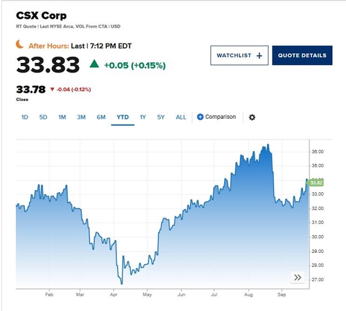 25일(미국 현지시각) CNBC에 따르면, 크리스천 웨더비 웰스파고 애널리스트는 "CSX와 BNSF 간의 신규 인터모달(복합운송) 상업 협력이 본격적으로 시작됐다. 이는 CSX 네트워크에 추가 물동량을 가져올 것"이라며 "특히 다른 미 철도사들의 물동량 증가세가 둔화하는 시점에 CSX는 상대적으로 실적이 돋보일 수 있다"고 분석했다.