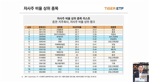 정 본부장은 자사주 비중이 높은 업종으로 지주사와 증권을 꼽았다.