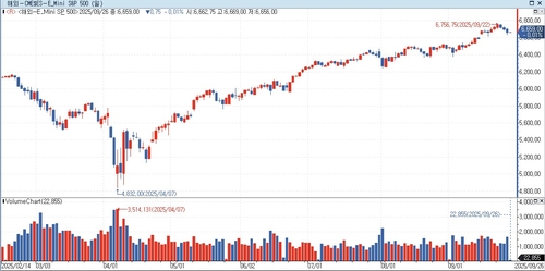 연합인포맥스 지수선물 통합화면(화면번호 6520)에 따르면 한국 시각으로 오전 10시50분 기준 E-미니 S&P500 지수 선물은 전장 대비 0.01% 내린 6,660.50에 거래됐다.