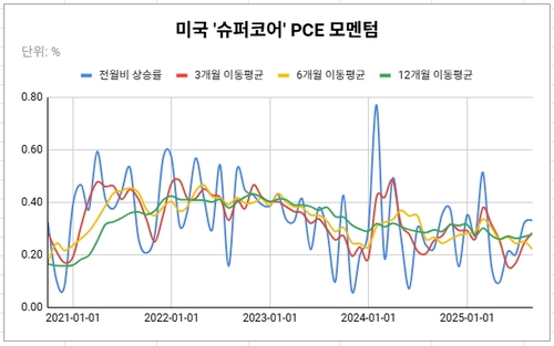 (서울=연합인포맥스) 김성진 기자 = 미국 연방준비제도(연준ㆍFed)가 기준으로 삼는 물가지표인 개인소비지출(PCE) 물가지수 가운데 한때 중시됐던 '슈퍼코어'(주거비 제외 근원 서비스) 부문이 견조한 오름세를 이어간 것으로 나타났다.