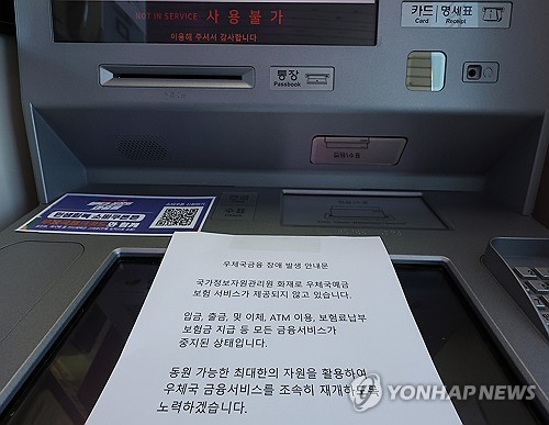 27일 서울 서대문우체국 우체국365 ATM에 '장애 발생 안내문'이 놓여 있다.2025.9.27 ksm7976@yna.co.kr