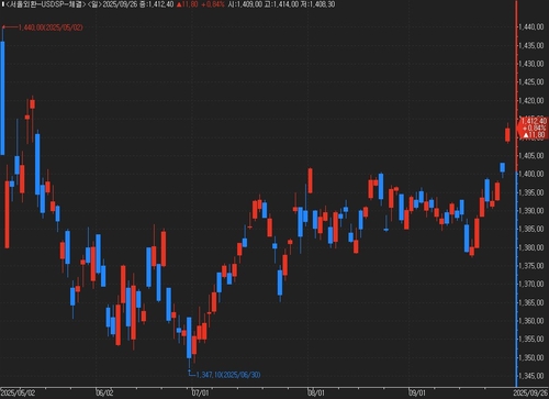 다만, 단단한 저항선인 1,400원선을 뚫고 단숨에 1,410원 위로 뛴 만큼 다시 1,400원선 아래로 떨어지는 하락 흐름을 기대하기는 어려운 분위기다.