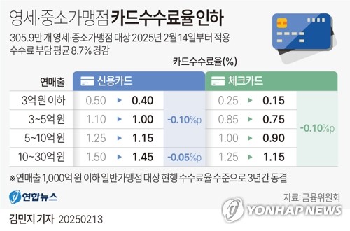 금융위원회는 지난해 말 영세·중소 가맹점에 대한 온라인카지노 조작업계의 온라인카지노 조작수수료 부담경감 가능 금액을 연간 약 3천억원 수준으로 추산하고 연매출 30억원 이하 모든 가맹점의 신용·체크온라인카지노 조작 수수료율을 일제히 인하했다.