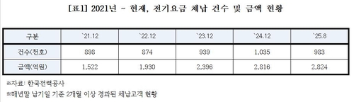 이 통계는 납기일 경과 2개월 이상을 체납으로 보고 주택용·산업용·농업용을 모두 포함해 산출한 수치다.