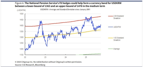 외환(FX)스와프를 통한 국민연금의 전략적 환헤지와 국민연금의 해외자산 매입 축소 등이 동반될 수 있다고 전망했다.