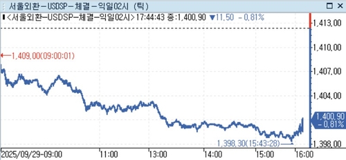 이날 달러-원 환율은 1,398.70원에 정규장을 마친 후 1,400원선에서 움직였다.