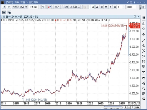 (서울=연합인포맥스) 올해 글로벌 금융시장에서 발군의 성과를 보인 자산은 단연 금이다. 금 선물가격은 사상 최고치 경신을 거듭해 올해 들어 지난 26일까지 약 44% 급등했다.