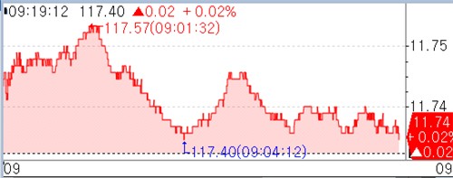 10년 국채선물은 4틱 오른 117.42였다. 외국인이 821계약 사들였고 증권이 1천270계약 팔았다.