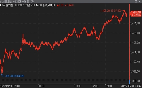 달러-원은 오후 장에서 한때 1,405.20원까지 올랐다.