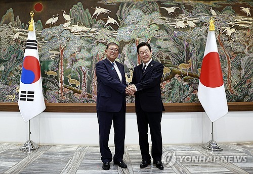 (서울=연합인포맥스) 정지서 기자 = 이재명 대통령과 이시바 시게루 일본 총리가 한 달만에 부산에서 재회했다.