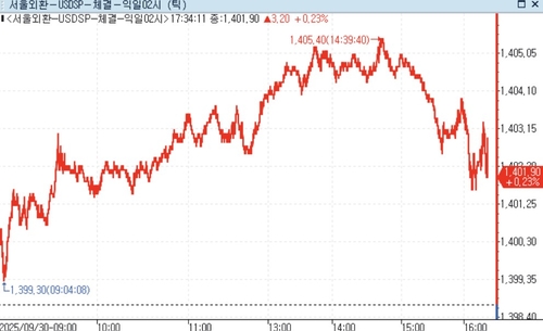 30일 외환시장에서 한국 no 1 온라인카지노원 환율은 오후 5시34분 현재 전거래일 대비 3.20원 오른 1,401.90원에 거래됐다.