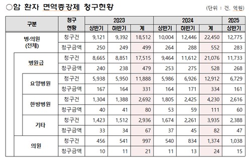 1일 국회 정무위원회 소속 김재섭 국민의힘 의원이 금융감독원으로부터 제출받은 자료에 따르면 병·의원의 암 환자 대상 면역증강제 청구 건은 2023년 상반기 9천121건에서 올해 상반기 1만2천775건으로 40.1% 증가했다.