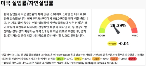 (서울=연합인포맥스) 이민재 기자 = 세계 경기 불황 지수가 지난달엔 큰 변동을 보이지 않았다. 다만 경기 둔화 가능성을 시사하는 미국 실업률·자연실업률 차이의 역전 여부를 주시해야 한다는 조언이 나온다.