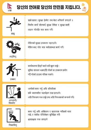 다국어 안전표지는 추락·화재·질식 등 5대 중대재해와 폭염 대응 등 노동부가 정한 12대 핵심 안전수칙 가운데 건설현장에서 사고 발생 우려가 큰 10개 유형을 선정해 제작됐다.