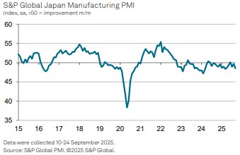S&P글로벌 마켓 인텔리전스의 경제 부책임자인 애나벨 피데스는 "일본 제조업 부문은 3분기를 약세로 마감했다"며 "기업들은 생산량과 신규 주문 모두에서 큰 폭의 감소세를 보였다"고 설명했다.