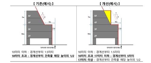 정부는 현행 4~5층 높이(10~17m)의 일조 사선 기준을 수직선으로 조정해 다세대 주택과 다가구 주택의 확장 가능한 공간을 확보해줄 계획이다.