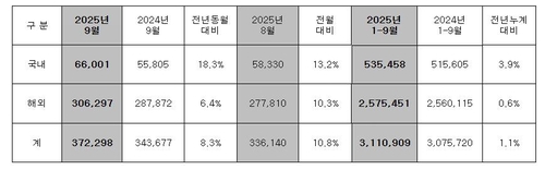국내는 전년 동월보다 18.3%, 해외는 6.4% 늘었다. 전체적으론 8.3% 증가했다.