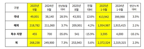 (서울=연합인포맥스) 윤은별 기자 = 미국의 국내 완성차 관세율이 25%로 유지되고 있는 와중에 현대차[005380]와 기아[000270]는 내수 판매 호조에 힘입어 지난달 판매량 성장세를 이어갔다.