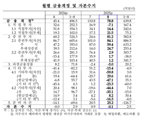 8월 금융계정은 순자산이 78억8천만온라인카지노 불법 증가했다. 지난 7월 110억8천만온라인카지노 불법 증가했던 것에서 증가폭이 다소 줄었다.