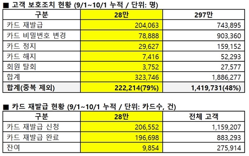 또한 같은 기간 정보가 유출된 전체 고객 297만명 중에서는 48%에 해당하는 약 142만명에 대한 고객 보호조치가 시행됐다고 밝혔다.