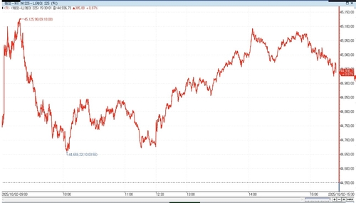 연합인포맥스 세계주가지수(6511)에 따르면 닛케이225지수는 전 거래일 대비 385.88포인트(p)(0.87%) 상승한 44,936.73에 장을 마쳤다.