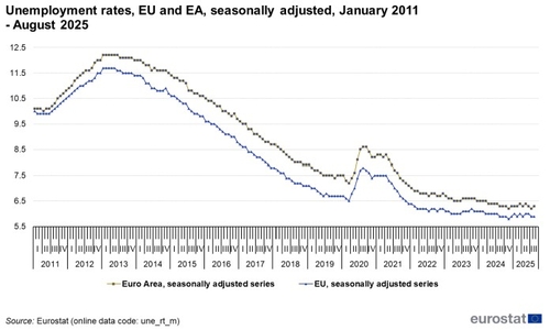 2일(현지시간) 유럽연합(EU) 통계 당국인 유로스타트(Eurostat)에 따르면 올해 8월 유로존의 실업률은 계절조정 기준 6.3%를 기록했다. 이는 전달 6.2%보다 소폭 오른 것이다.