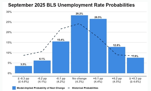 실시간 실업률 예상 모델에 따르면 9월 실업률이 지난 8월(4.3%)과 동일할 가능성이 28.2%였다.