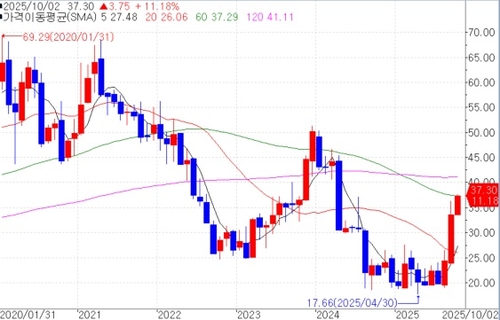 이는 한 달 전인 지난 9월 2일 종가가 24.21달러였던 것을 고려하면 한 달 새 54.1% 상승한 것이다.