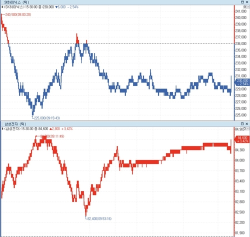 마침내 삼성전자, SK하이닉스 주가가 함께 오르기 시작했다. (산업부 유수진 기자)