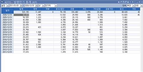 연합인포맥스 '발행만기 통계'(화면번호 4270)에 따르면 2026년 한국물 만기도래 규모는 620억1천300만달러 규모다.