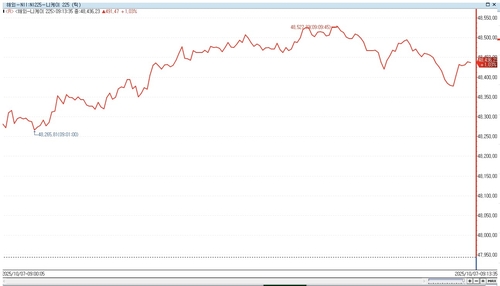 오전 9시 10분 현재 닛케이지수는 전장보다 553.18포인트(1.15%) 오른 48,497.94에 거래됐다.